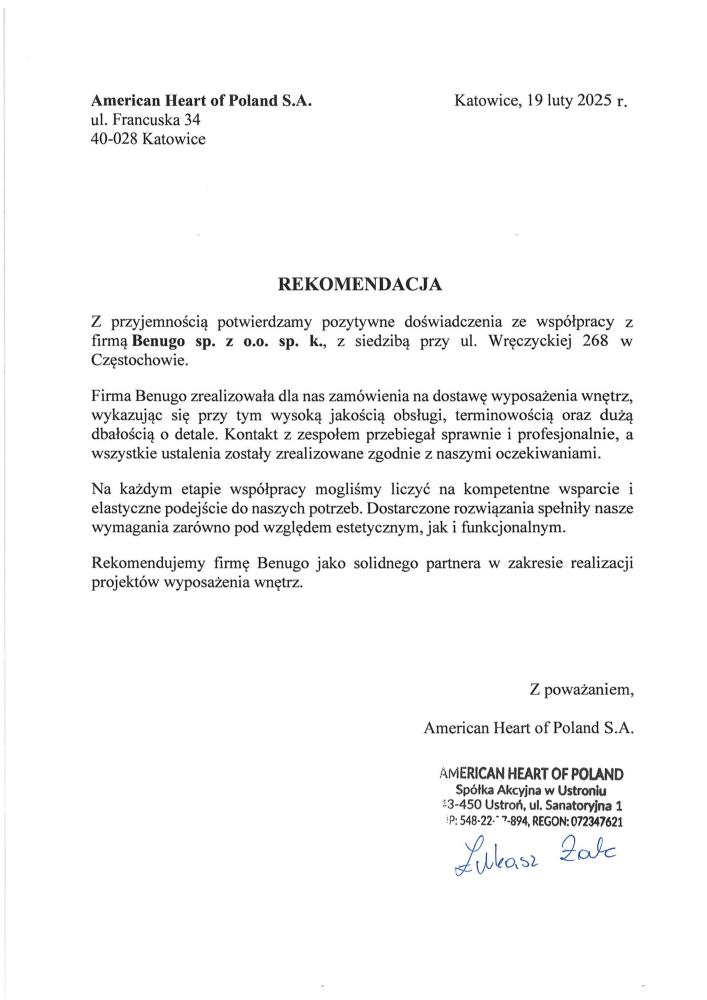 Marka Benugo istnieje na rynku od 2013. Od tej pory zaufało nam wielu Klientów, doceniając nie tylko kunszt naszych mebli, lecz również cały proces logistyczny – od zamówienia konkretnego produktu, aż po jego montaż. Pochwały i rekomendacje to powód do dumy, który warto eksponować. To również dowód na to, że liczy się dla nas satysfakcja z możliwości tworzenia piękna w przestrzeniach, które na to zasługują.